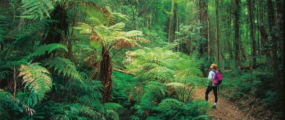 Box Forest Track offers an opportunity to step back in time and explore a subtropical rainforest rich in history and natural beauty. Located in Main Range National Park in Queensland, this 5-kilometre hike is graded as moderate (Grade 3) and typically takes around two hours to complete. The track follows the path of West Gap Creek, winding through a forest of towering brush box trees, some of the oldest and largest trees in the area. These giants are a highlight of the hike, with their massive trunks—among the thickest in the rainforest—standing as silent witnesses to centuries of growth. Many of these trees are over 100 years old, and in the summer months, their smooth, salmon-coloured trunks become particularly striking after they shed long strips of bark.