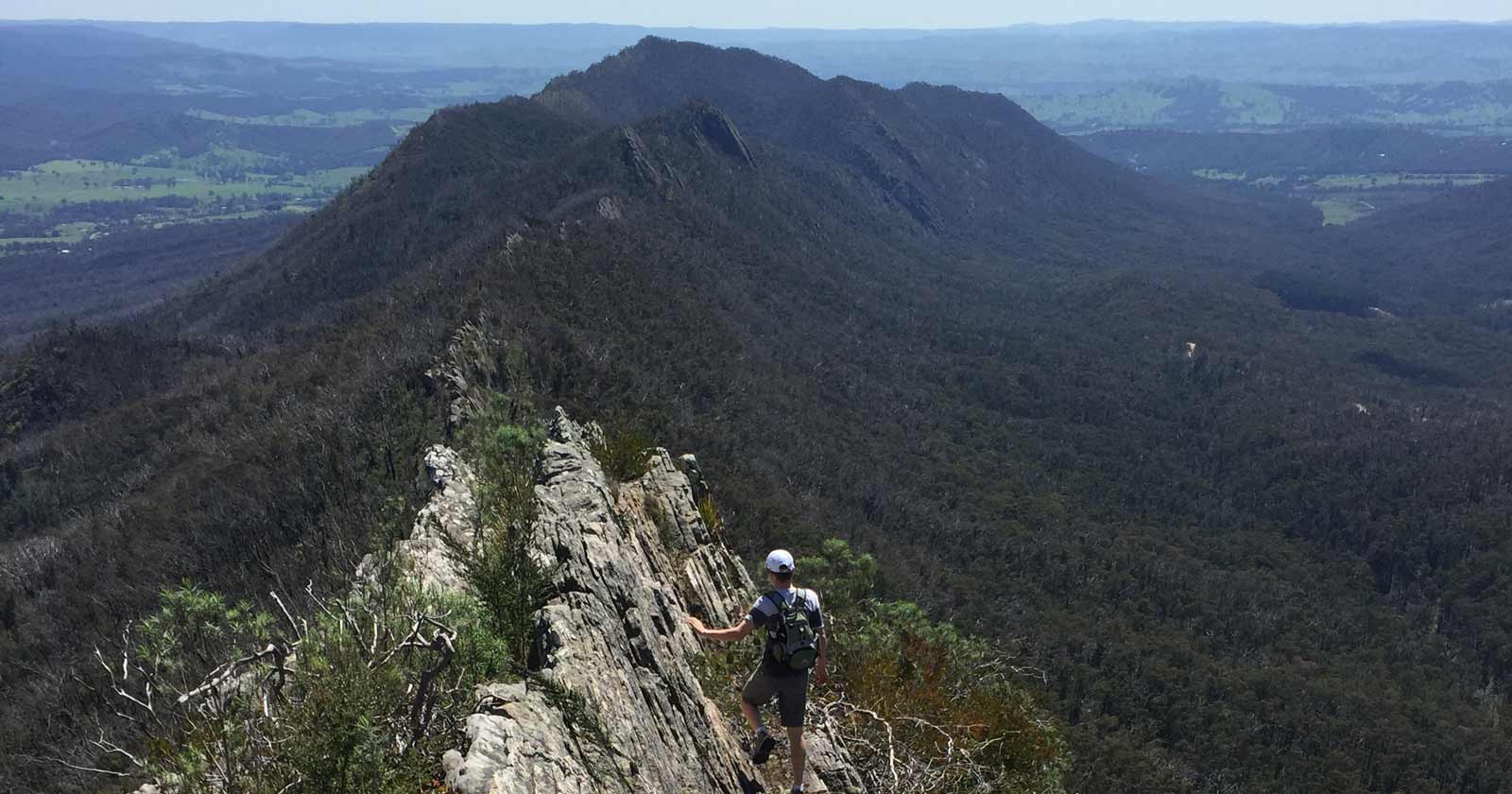 This Cathedral Range - Southern Circuit hike explores the southern section of the range, taking in some fascinating features such as Wells Cave, The Canyon, Sugarloaf Peak, The Razorback, The Farmyard and South Jawbone. This is a hike for those with a sense of adventure as it involves a serious amount of unassisted rock scrambling along exposed ledges and steep rocky outcrops as you make your way up to Sugarloaf Peak and along the aptly named Razorback Track.