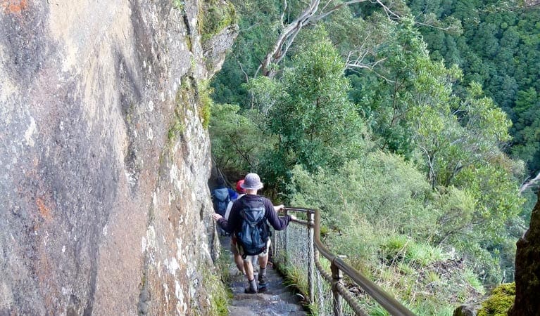 Explore the lush valley on a number of short detours, making sure to stop for a memorable picnic beside the tumbling waters of Katoomba Falls. The opportunity to take the world-famous Scenic Railway or Scenic Cableway back to the top might just be too irresistible. However, if you're after more heart-pumping action, return back up the stairs.