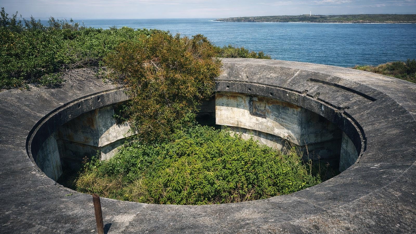 The route then climbs steeply away from the cliffs along a rough management trail, leading to another World War Two bunker near the Westpac helicopter facility. Concrete storage rooms sit below a circular gun base, and while the structure is fascinating, it is also weathered and damaged in places. Watch your footing and be mindful of sharp edges.