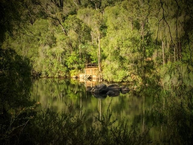 This trail, although descending along the river, has some steep and rocky ascents and descents, with some climbing over logs required. However it provides wonderful views of the rapids and the tranquil pools of the Collie River. The amount of water running depends on the amount being released from the bottom of the dam. This water is used for irrigation downstream. It is possible to swim in the quiet pools along the way. Note that LeonaRoad Drive, the road running alongside the river on the opposite bank, is one way from the dam to Honeymoon Pool.