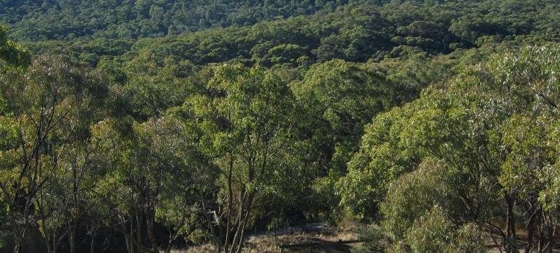 Turn right and head south on the Dry Diggings Track for 300m and cross Back Hepburn Road. Take the right track up to Jacksons Lookout and ascend the steps for views over the surrounding area. Descend steps and retrace walk back to continue south on the Dry Diggings Track, which, after an east then south-west loop over a creek, turns west for about 1.7 km to the end of a car park at (Sulphur Spring). Walk through the car park to Mineral Springs Crescent and turn left.