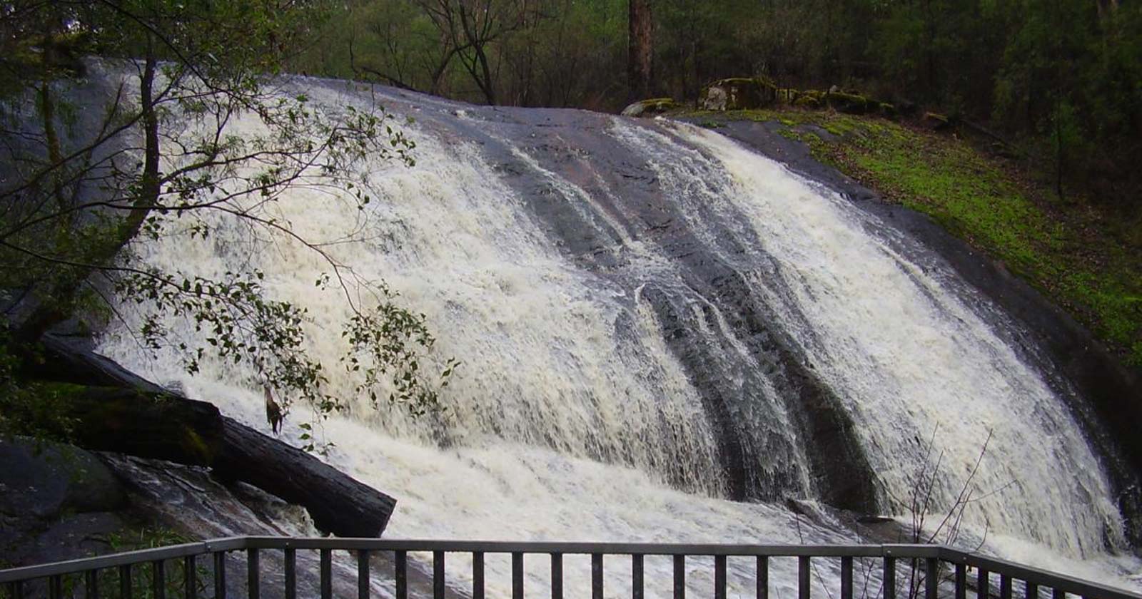 The Lane Poole Falls Walk Trail starts at the Boorara Tree day use recreation site about 18km south-east of Northcliffe. Follow the signs off Boorara Road to the tree, which, until 1977, was a fire lookout tower. The Boorara tree, which has had its cabin removed, is surrounded by a shady Picnic Area. Here you'll find the start of a 5km track to the misty veil of Lane Poole Falls on the Cantebury River. The trail was once a firebreak, designed to bring a raging wildfire to a sudden halt. These days all it will stop is you as you pause to admire the tall karri trees keeping quiet sentinel over the creepers, vines and mosses, scrambling across the dense forest floor. In spring, the awakening wild flowers peep over the blanket of undergrowth. As you near the falls, the track descends steeply, before you emerge to see the fast flowing water tumbling over a granite wall to a pool, 12 metres below. Granite outcrops along the trail support a rich diversity of fragile plants. Take a rest at the lookout shelter near the falls and enjoy the sounds of the forest.In summer the flow may be reduced to a trickle but you can still soak up the unspoilt atmosphere of this hidden valley with its towering river banksias.