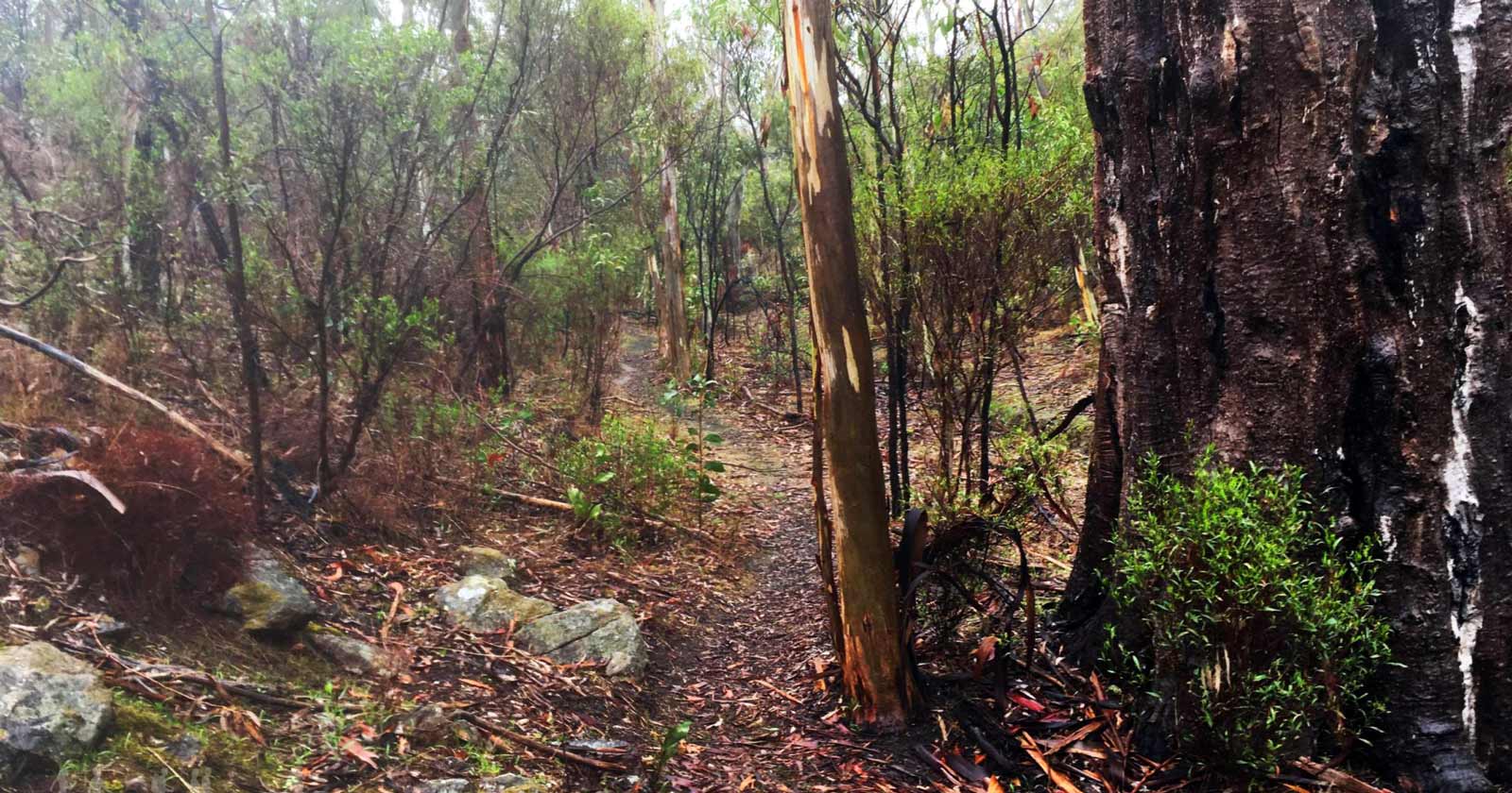 For the return leg, the trail utilises fire tracks that run parallel to nearby roads. While less than 2 kilometres follow a sealed bitumen road, these fire tracks are shared with horse riders, so be aware of your surroundings.