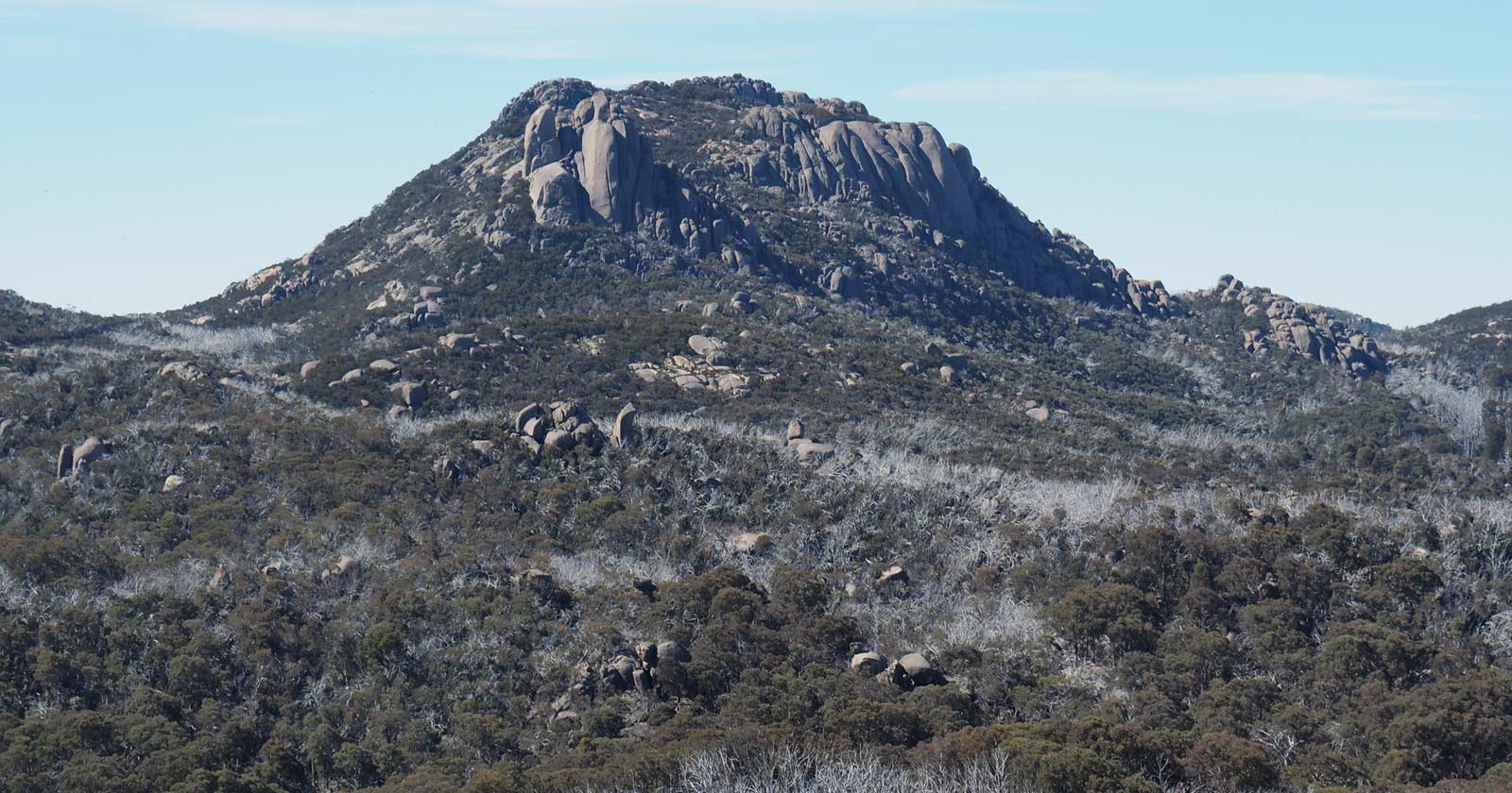 From the campsite, it's a further kilometre to the summit of Mount McLeod. The trail climbs gradually at first, then steepens slightly as it approaches the peak. At 1529 metres, Mount McLeod is the highest point in the northern part of the park. The summit rewards walkers with expansive views across the Mount Buffalo plateau and down into the Oven Valley – a rugged, layered panorama shaped by centuries of wind and weather.