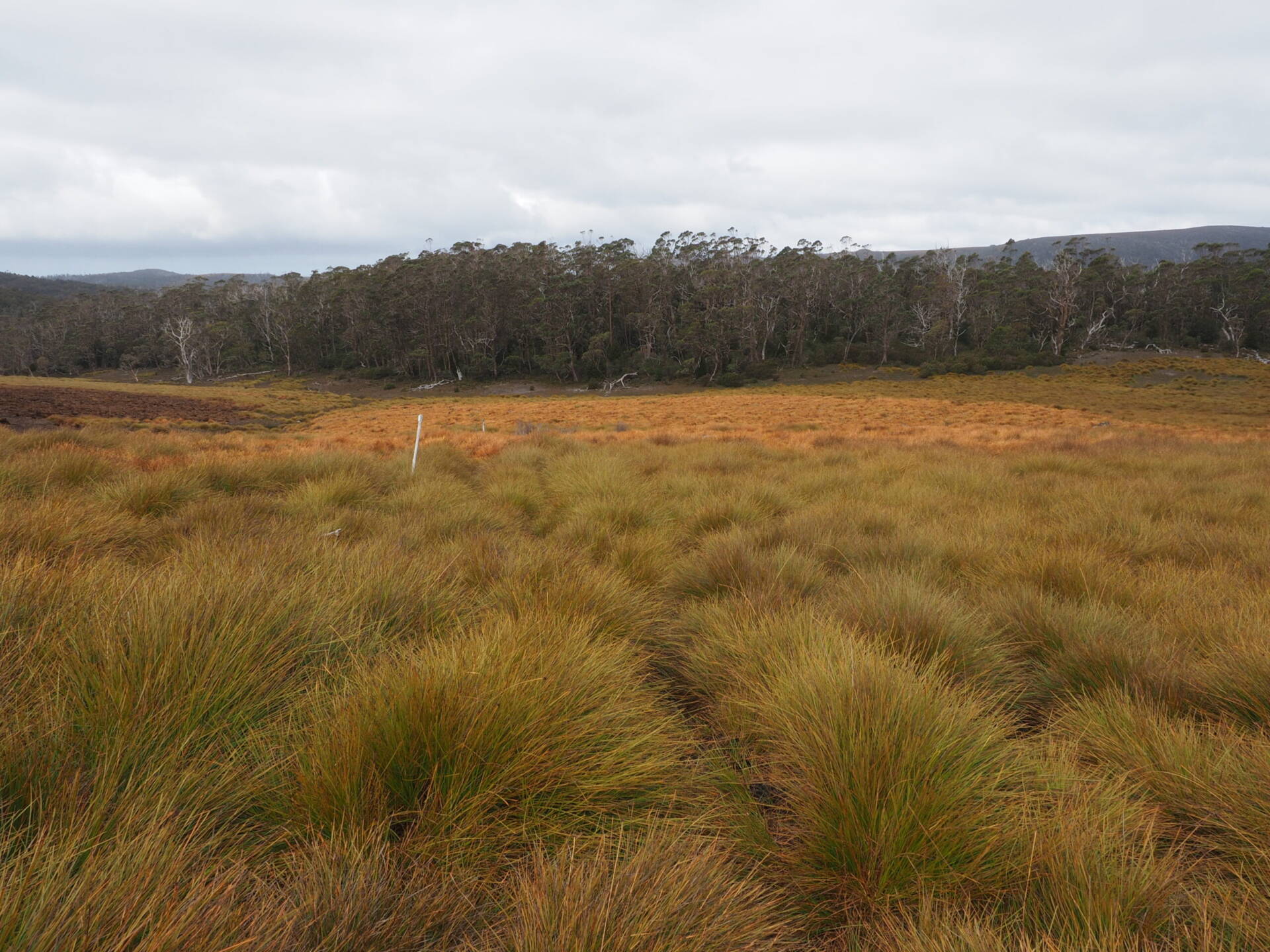 As the trail progresses, it meanders along a canyon, requiring occasional rock scrambling. After the canyon, the landscape opens into alpine grasslands, where navigation is aided by periodic marker poles. The trail alternates between open areas and patches of bushland before reaching a junction for Speeler Track and King Billy Track. Turn left to follow the King Billy Track, which eventually leads to Cradle Mountain Lodge.
