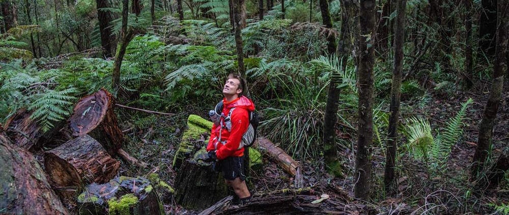 Setting off from Big Pats Creek, the Tramline follows the route cut through the forest by William Richards in 1916 so he could move highly-prized timber from outlying sawmills deep in the bush to the train line lower in the valley. The route wanders and not only to maintain a gradient suitably gentle for moving logs (and as it happens walking), Richards was forced to make tight turns to skirt private land on which he would have had to pay high fees.