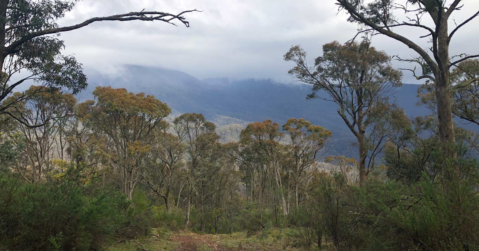 Take the Goulburn Valley Highway B 340 towards Eildon. 2 km past the Snobs Creek Pub (and 2 km before the bridge over the Eildon Pondage), turn south down the sealed Eildon – Jamieson Road. After 15 km, turn east (your left) on to Taylors Creek Track at map grid 102 660. This road is not properly surfaced, but is in good condition and shouldn’t be a problem for most cars. After 4 km you will get to a road junction at grid 115 674. Leave your car here.