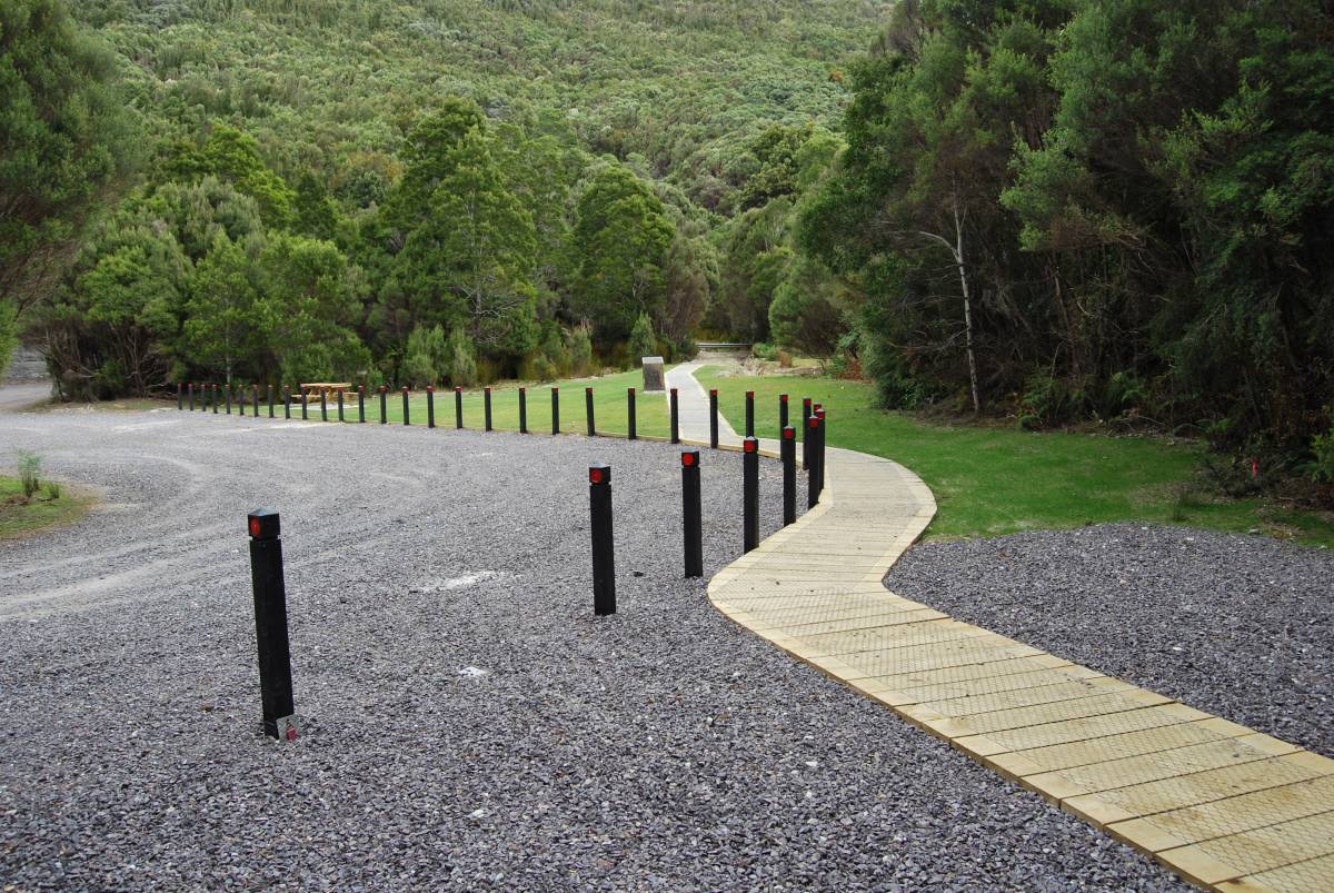 A line of bollards now separates the gravel car park from the tunnel and a neatly grassed picnic ground surrounding a plaque describing the history of mining in that area. A timber walkway leads you from the picnic ground, through the tunnel to the road at the northern end.