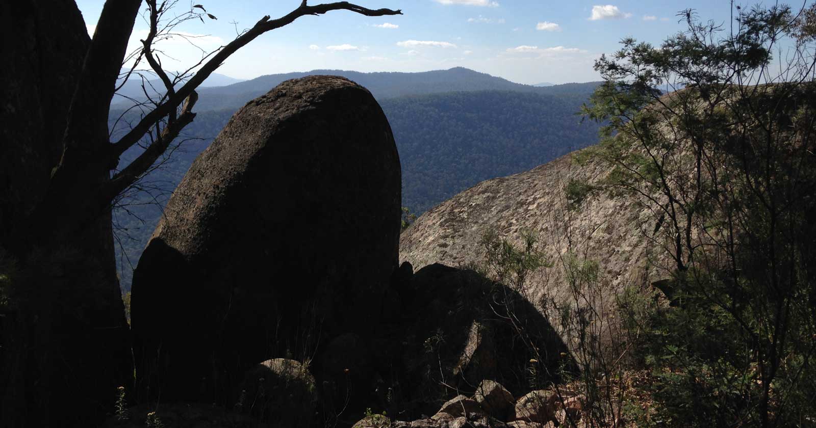 Starting from the picnic area at the summit, the trail weaves gently around fascinating granite outcrops perched atop the 1,041m peak. Along the way, you’ll encounter a mosaic of rock pavements, boulder fields, and weathered shelves that lend the summit its distinctive character. As you meander through this rocky terrain, a canopy of Narrow-leafed Peppermint, Candlebark, Blue Gum, Manna Gum, and Brittle Gum provides dappled shade, creating a tranquil atmosphere to enjoy the walk.