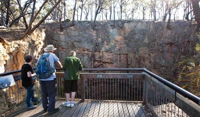 Thought to be around 400 million years in the making, this is an extraordinary limestone marvel; a roofless cave which is over 100m deep and 50m wide. It can be reached by walking from Berlang campground, wading across Shoalhaven River, then continuing through dry eucalypt forest and unique nana heath, with expansive views of the park on your journey. The vast open chasm can be viewed from the lookout and, if you're there in the early morning or late afternoon, you may see its resident lyrebird come out from its ferny grotto to feed. For a more challenging hike, carry on to Marble Arch or return to Shoalhaven River for a picnic and a swim.