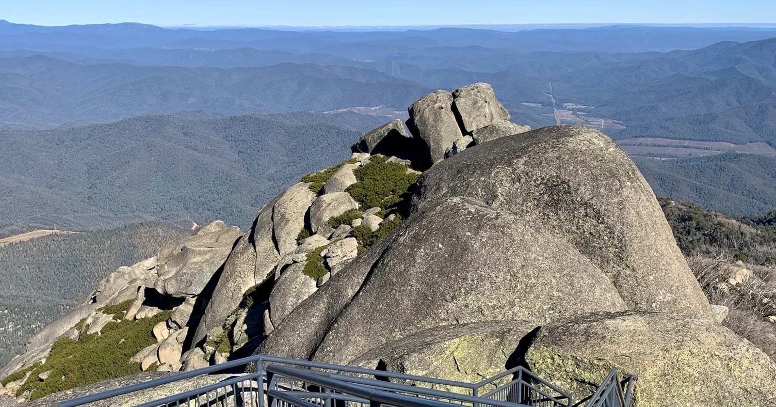 At the summit, you’ll find yourself perched atop granite cliffs at the edge of the Mount Buffalo plateau, surrounded by a striking landscape of weathered boulders and the twisted trunks of Snow Gums. These trees, which have succumbed to the harsh conditions and bushfires over the years, lend the area a unique, almost eerie beauty. From the stone lookout shelter, you can take in views of the surrounding mountains, offering a sense of serenity far removed from the bustle of everyday life.
